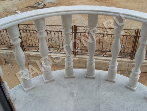 Балясины и перила формы полукруг из мрамора на балкон.