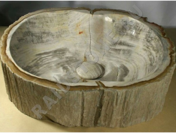 Раковина накладная из окаменелого дерева.