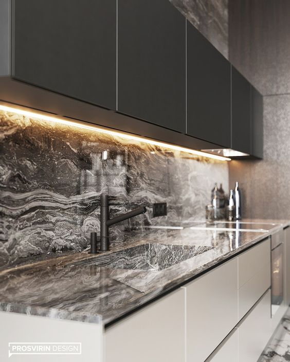 Столешница с раковиной из мрамора (Гриджио Арабика) на кухню