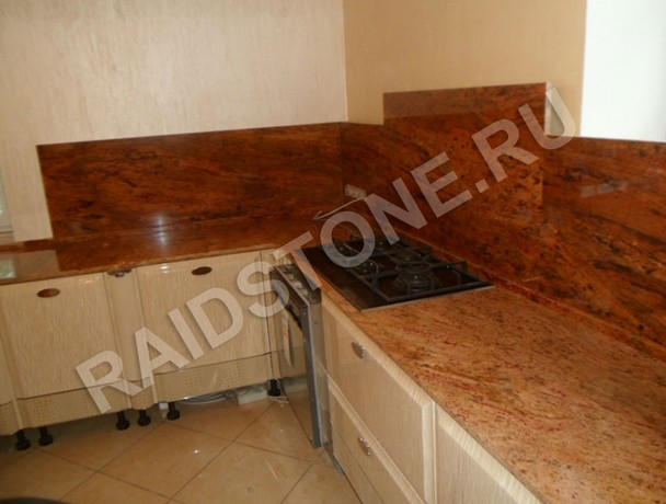 Столешница для кухонной мебели с фартуком и с плинтусом из гранита Санрайз