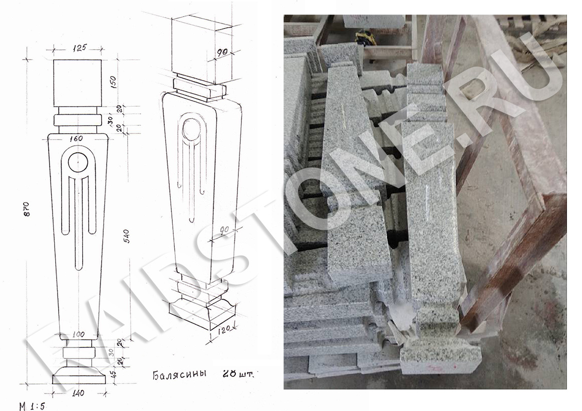 Балясины из гранита по индивидуальным чертежам архитектора.
