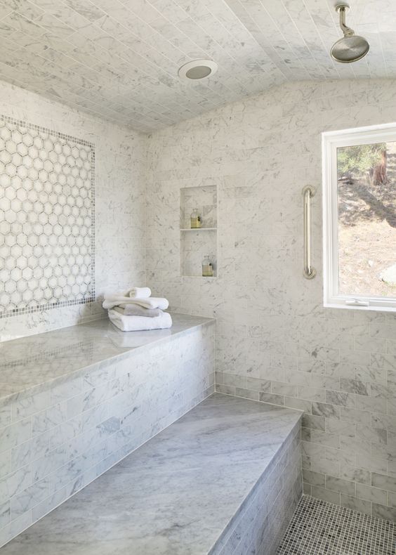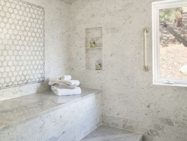 Облицовка стен в турецкой бани из мрамора Бъянко Каррара (Италия).