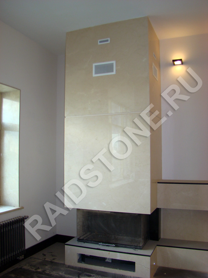 Камин с банкетками из мрамора Крем Марфил.
