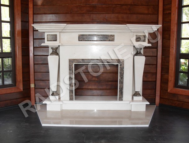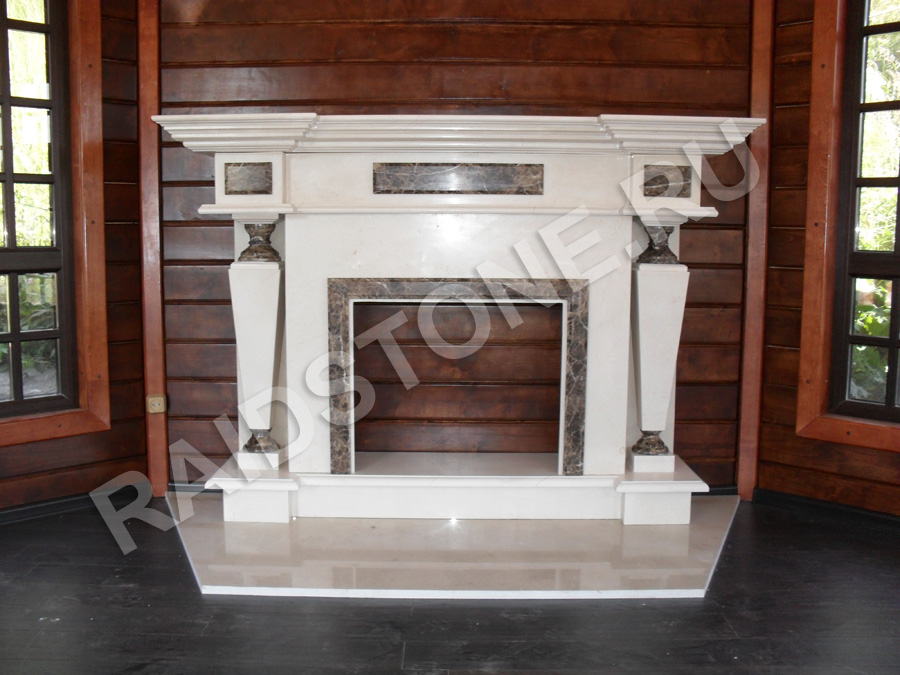 Портал камина из мрамора Крема Марфил и Имперадор Дарк.