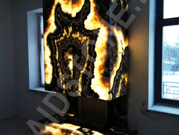 Разнообразие цветов оникса позволяет подобрать камин, который будет гармонично сочетаться с любым интерьером: