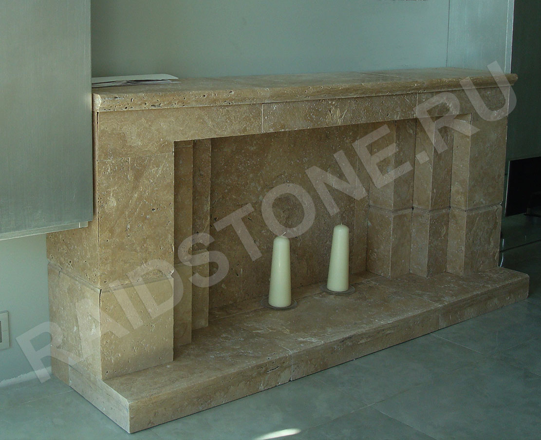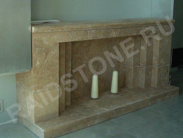 Облицовка камина плитами травертина Лайт антик 300х600х20 мм.