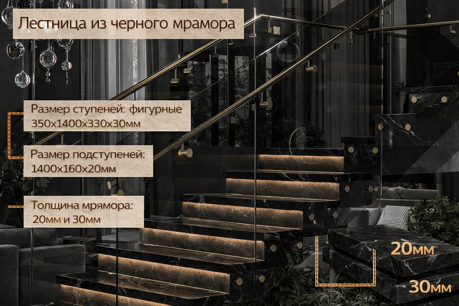 Лестница из черного мрамора