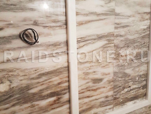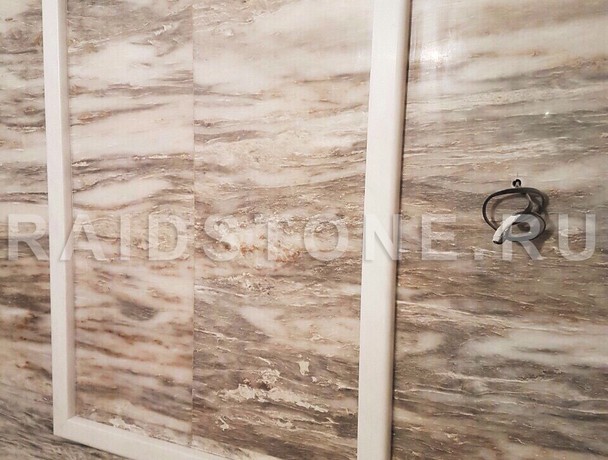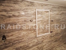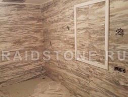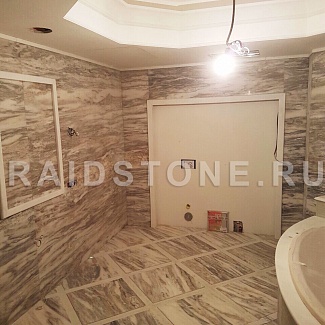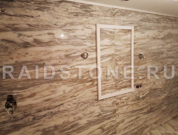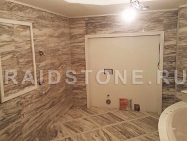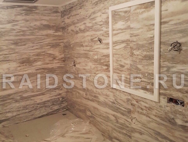 Облицовка стен санузла слебами мрамора Лучидо луна (?uchido Luna), Бразилия.
