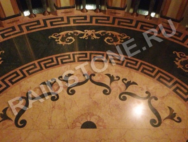 Облицовка пола мрамором с панно гидроабразивным резом.