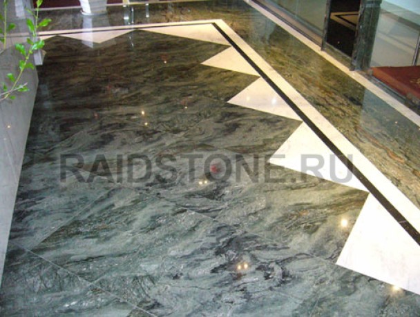 Облицовка пола мрамором Саломе (Salome, Турция), Мугла (Moogla,Турция) и Бидасар грин (Bidasar Green, Индия).