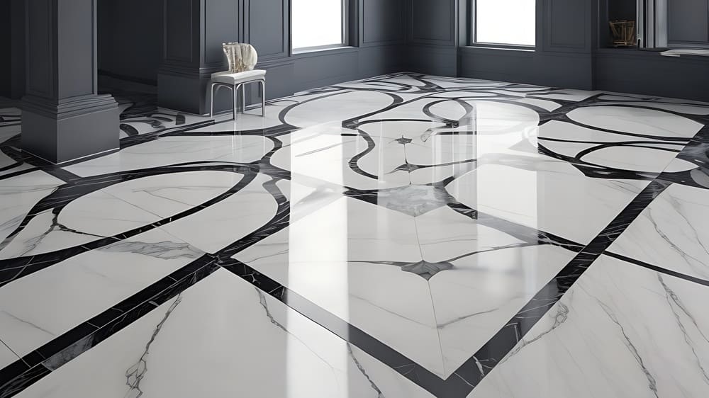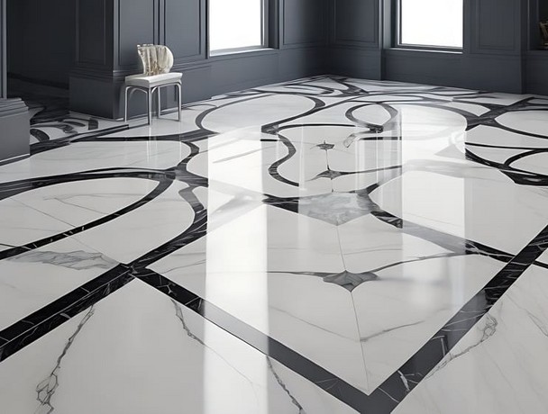 Пол из мрамора Статуарио и Неро Маркина