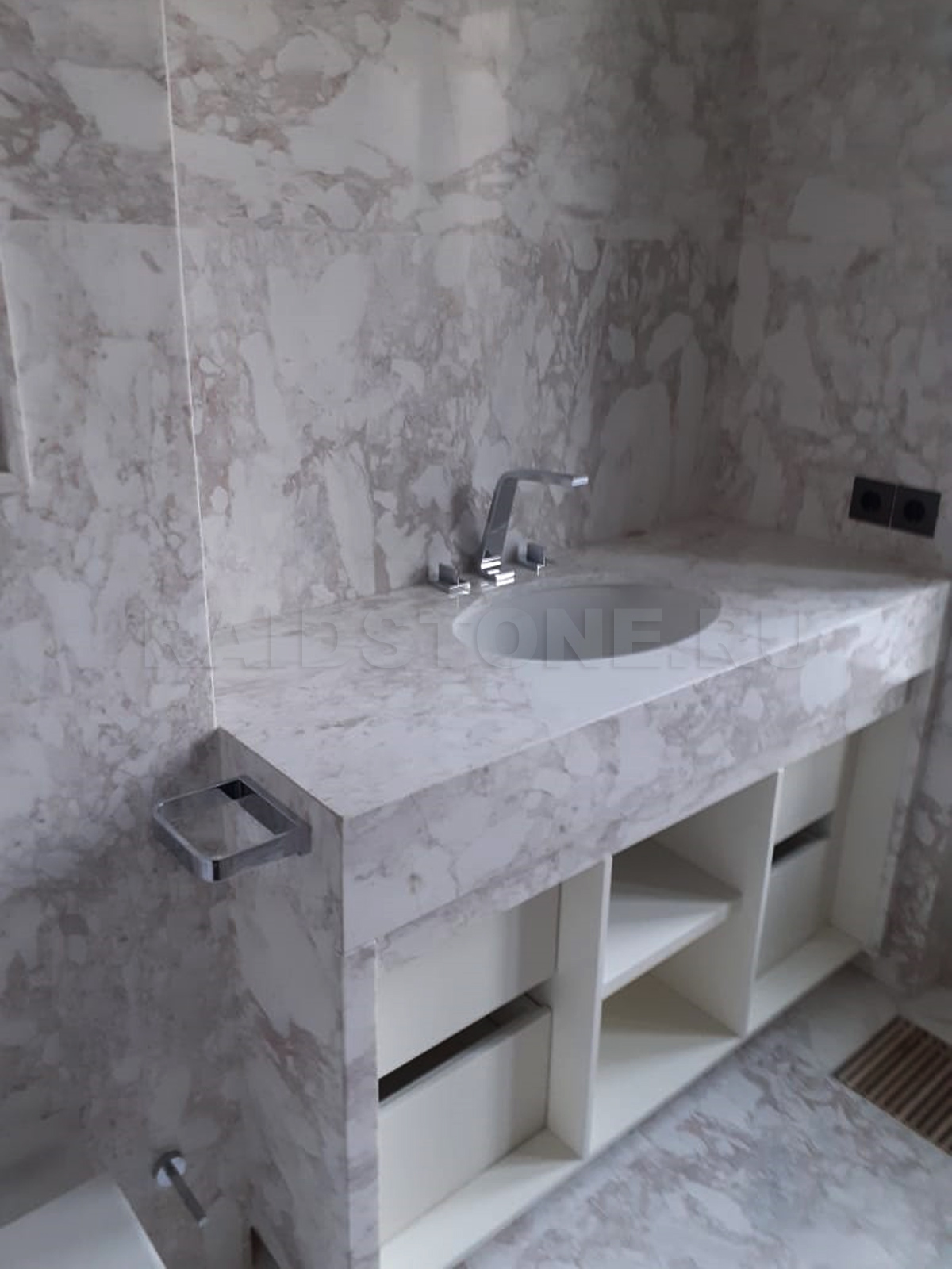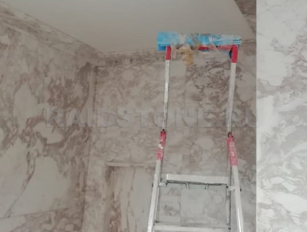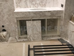 Облицовка стен, пола, мебели ванной комнаты мрамором (в процессе изготовления изделий, в процессе монтажа и после окончания работ).
