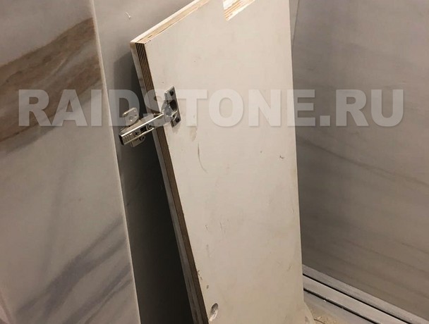 Облицовка стен, пола, мебели ванной комнаты мрамором (в процессе изготовления изделий, в процессе монтажа).