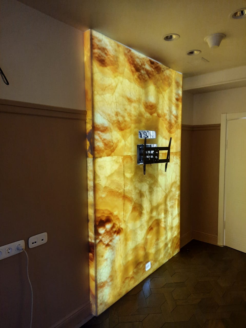 Компания Raidstone предлагает изготовление декоративного панно из оникса с установкой на стену. Это уникальный природный материал: оникс – натуральный камень со слоистой светопрозрачной структурой, полностью раскрыть его красоту позволяет установка светодиодной подсветки. Такой материал имеет широкий диапазон цветовых оттенков: они варьируются от светло-желтых до темно-коричневых. Натуральный камень имеет неповторимый рисунок: каждый слэб уникален, установка панно позволит придать комнате неповторимое очарование.
