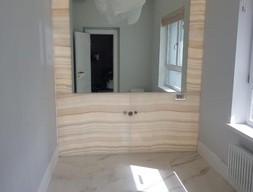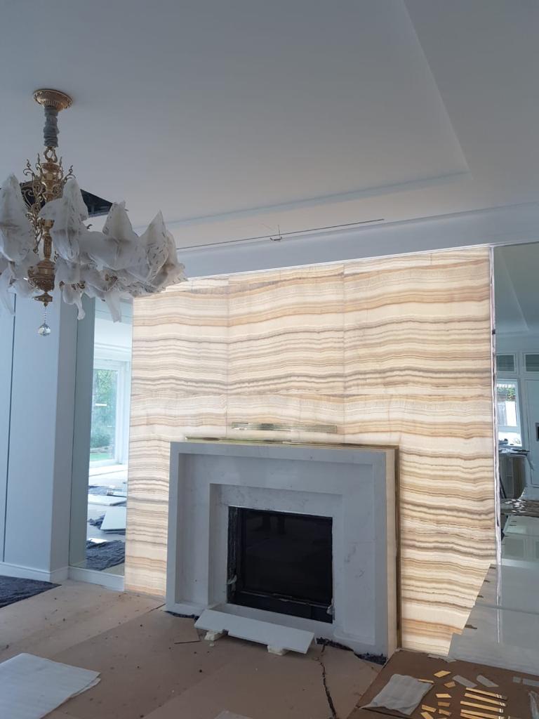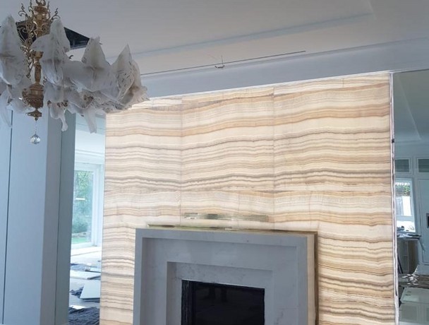 Монтаж с подсветкой 63000 р/м2Компания Raidstone изготовила уникальное панно из оникса для установки на стену. Это оригинальное украшение, выполненное из натурального камня. Для изготовления использован сорт оникса Айвори: он имеет широкий диапазон оттенков от светло-бежевого до коричневого цвета. Отличие оникса от других каменных пород - слоистая структура. Слои камня обладают светопрозрачностью, поэтому панно могут оснащаться светодиодной подсветкой.