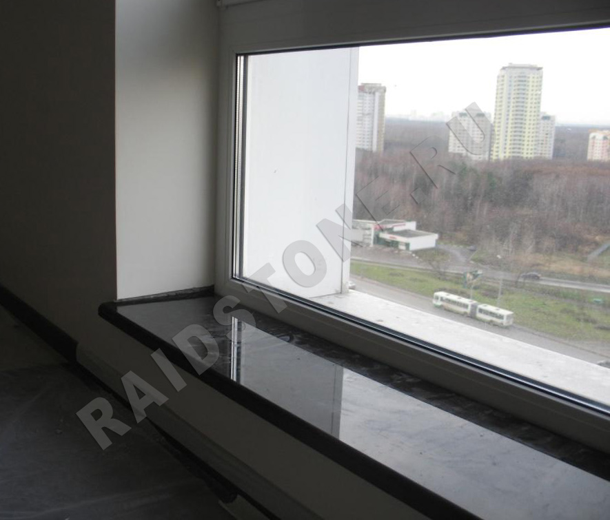 Подоконник из гранита Абсолют Блек (Индия) Absolute Black.