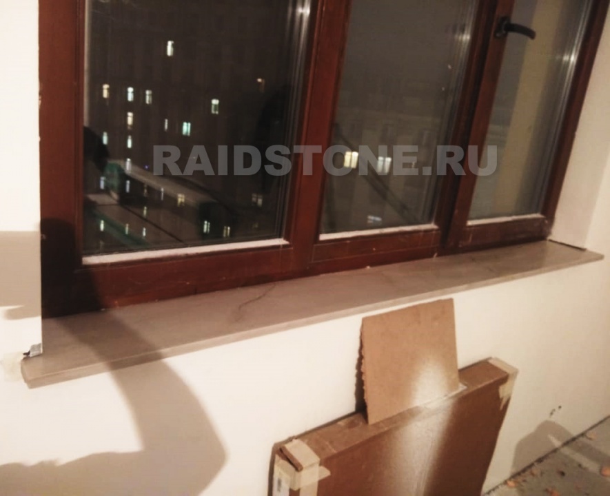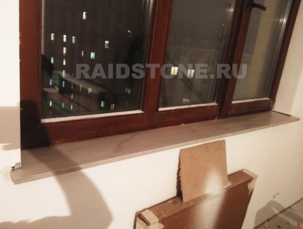 Материал натуральный кварцит-новая на рынке отделочных материалов для интерьера. Натуральные кварциты импортируют в основном из Бразилии. Это не распространенный материал, с красивым, не контрастным и спокойным рисунком, удивительного бежевого цвета, с оттенком розового, голубоватого. Этот камень сейчас очень модно среди дизайнеров интерьера. Несмотря на довольно высокую стоимость, используют часто для столешниц и фартуков в кухни. Подоконники из кварцита Калахари — крепкие, надежные и красивые изделия, подчеркивающие изысканный вкус владельца.