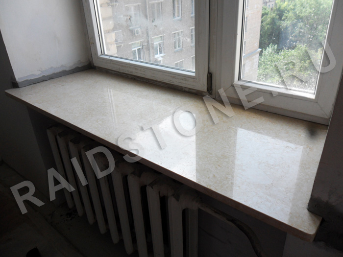 Подоконник из мрамора Бьянко Перлино (Италия).