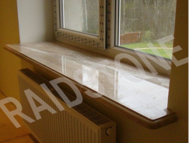 Подоконник размером 1800х300х30 мм изготовлен из светло-коричневого итальянского мрамора Брекчия Оничиата.