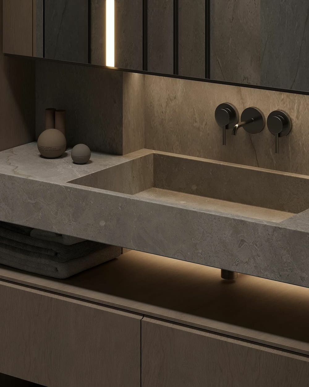 Прямоугольная раковина (серый мрамор)