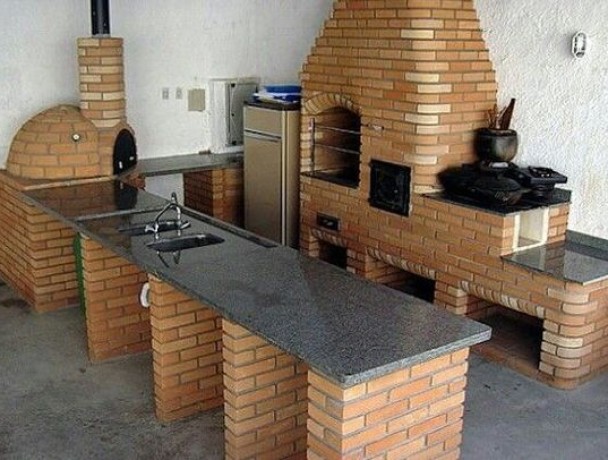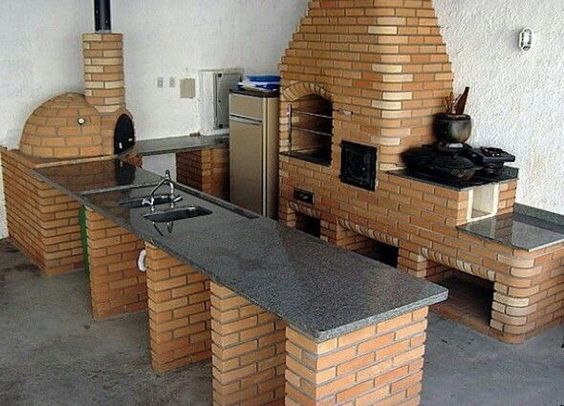 В рабочей зоне уличной кухни сделаны проемы под мойку и смеситель, снизу к ним подведены коммуникации. Отделочный материал выкроен с минимальным количеством швов.