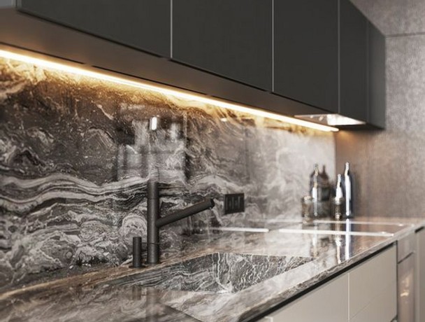 Столешница с раковиной из мрамора (Гриджио Арабика) на кухню