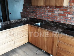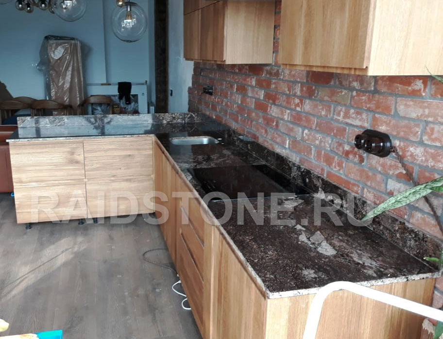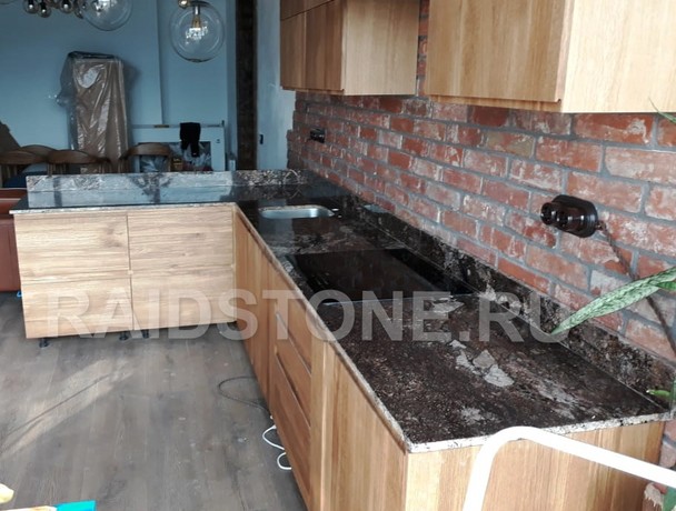 Столешница с плинтусом в кухню из итальянского гранита Браун Пёрл.