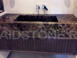 В представленном оформлении конструкция будет выглядеть монументально и роскошно, словно единый постамент. Предлагаем заказать столешницу с раковиной из мрамора Имперадор Дарк у нас на сайте. Поскольку мы являемся изготовителем, гарантируется высокое качество и природное происхождение материалов.