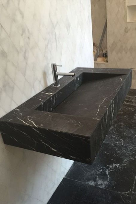 Неро Макина подходит и для ванной комнаты, и для кухни. Столешница из камня гармонирует с фасадами мебели из дерева, с окрашенными матовой краской поверхностями, с зеркалами, стеклом и металлом. Сочетается с сантехникой разных цветов.
