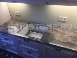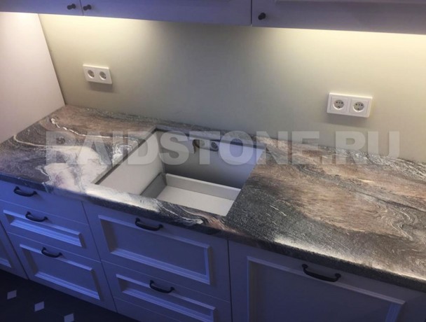 Каждый вид камня имеет свои особенности, на фото вы можете оценить все достоинства природного материала, роскошь структуры и цветовых переходов. Предлагаем заказать столешницу для кухни из мрамора Чиполино, оформленную по стандартам и получившую защиту от воздействия влаги, прочную и привлекательную.