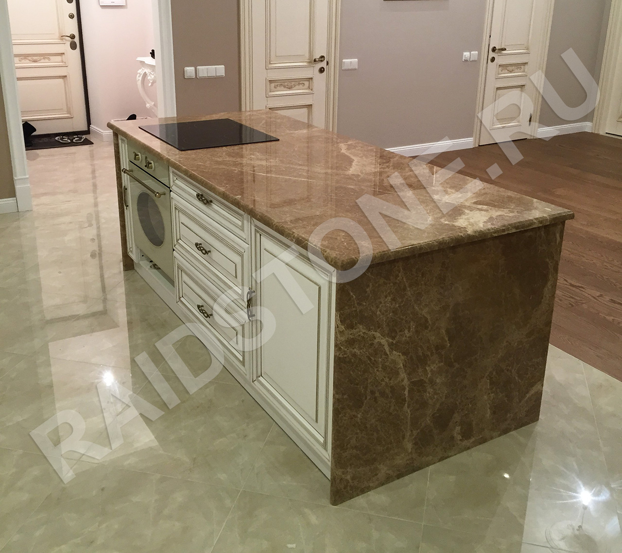 Столешница и остров в кухню из мрамора Имперадор лайт