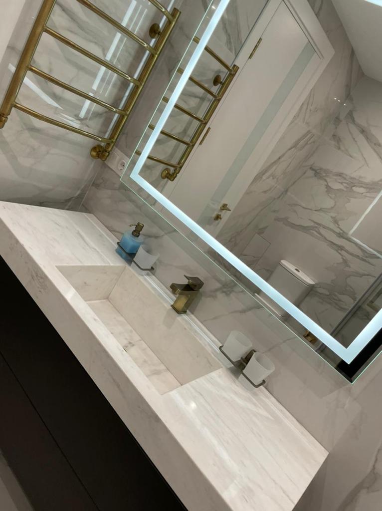 Заказать столешницу с раковиной на ванную белую с зеркалом предлагает наша компания, мы занимаемся профессиональной обработкой натурального камня и созданием уникальных предметов декора. Природная красота материала сделала его востребованным в течение веков, каждое изделие имеет неповторимый рисунок.