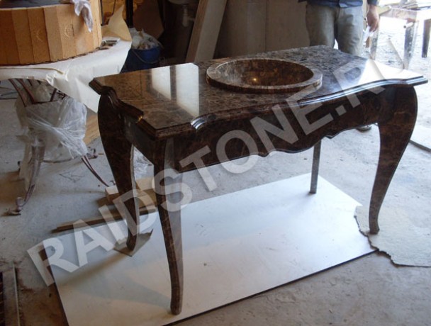 Стол для ванной комнаты из мрамора Имперадор Дарк с раковиной из мозаики ручной работы Материал стола: мрамор Имперадор Дарк, Emperador Dark (Испания).