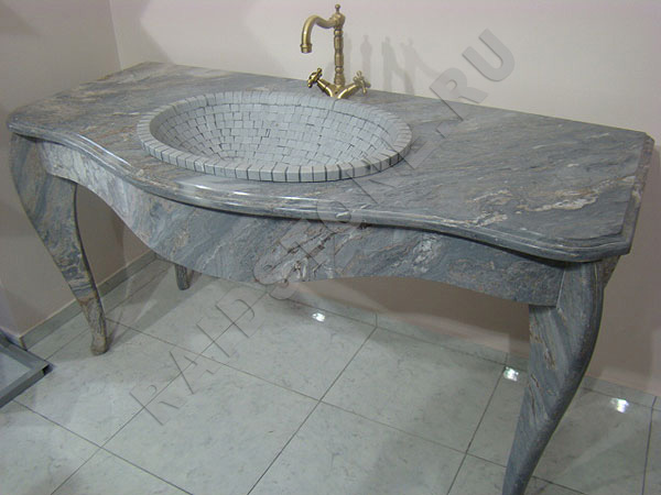 Мебель для ванной комнаты из мрамора Полисандро Нуволатто с раковиной из мозаики ручной работы