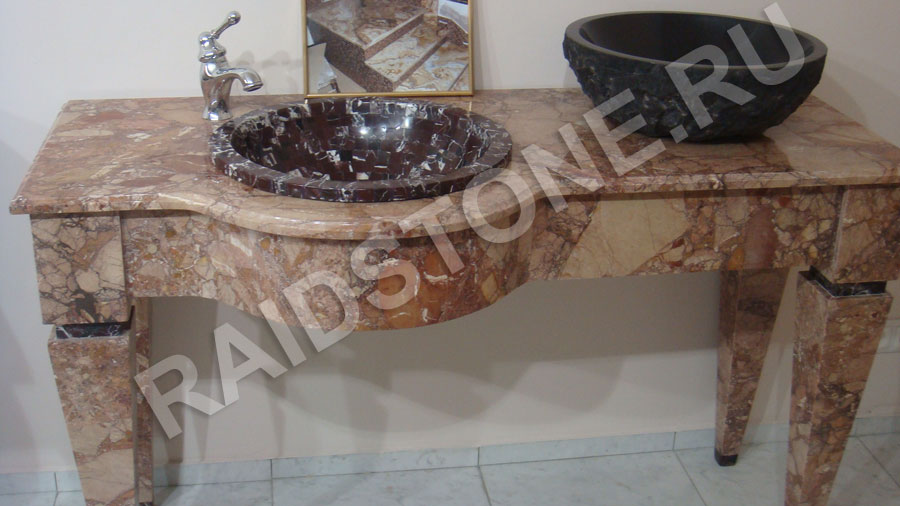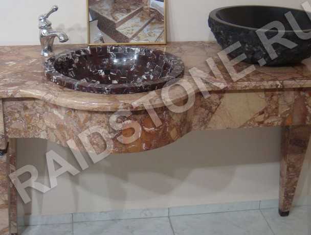 Стол из мрамора Бречия Перниче (Breccia Pernice) и с с встроенной раковиной из Россо Леванто (Rosso Levanto) ручной работы.