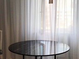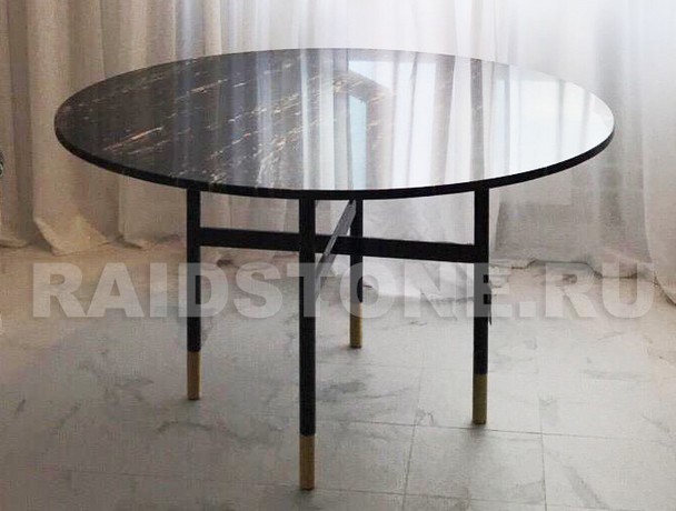 Стол обеденный со столешницей из мрамора на подстолье из нержавеющей стали
