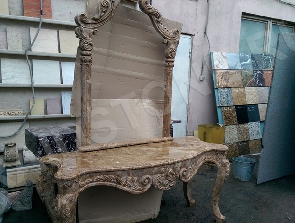Стол можно использовать как трюмо в будуаре, можно также использовать как стол в ванной комнате, добавляя накладную мойку.