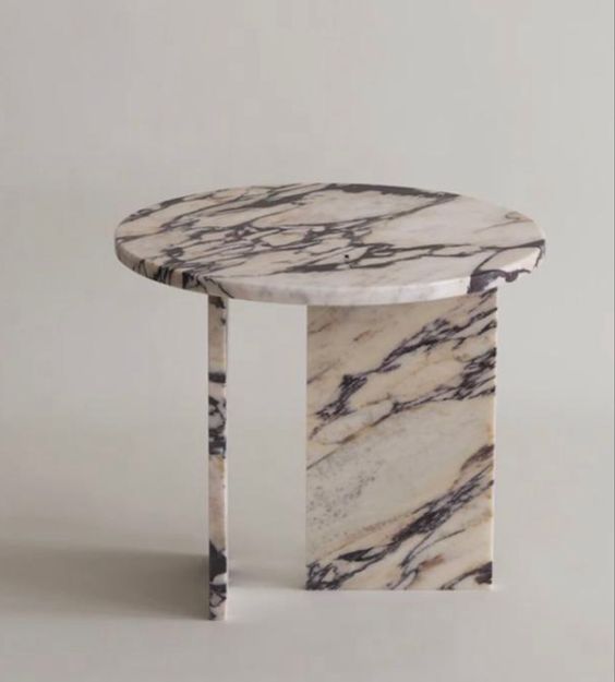 Журнальный столик бело-черный круглый из мрамора