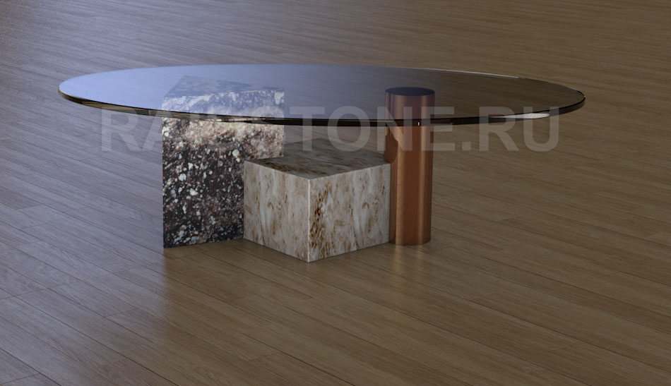 Материал стола: ножки - бразильский гранит, латунь, столешница - стекло