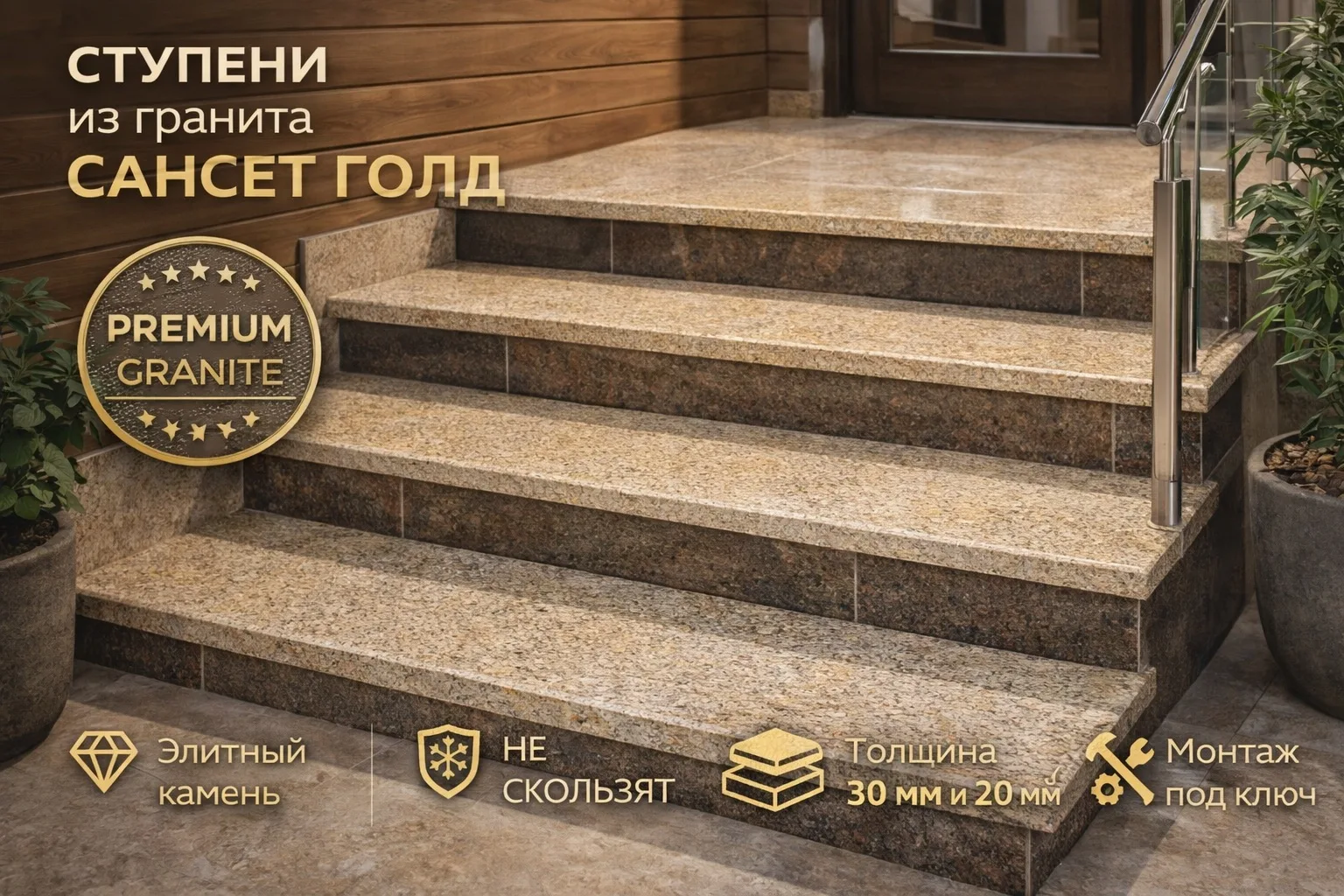Демонтаж и монтаж ступеней из гранита Сансет голд (Переделкино)