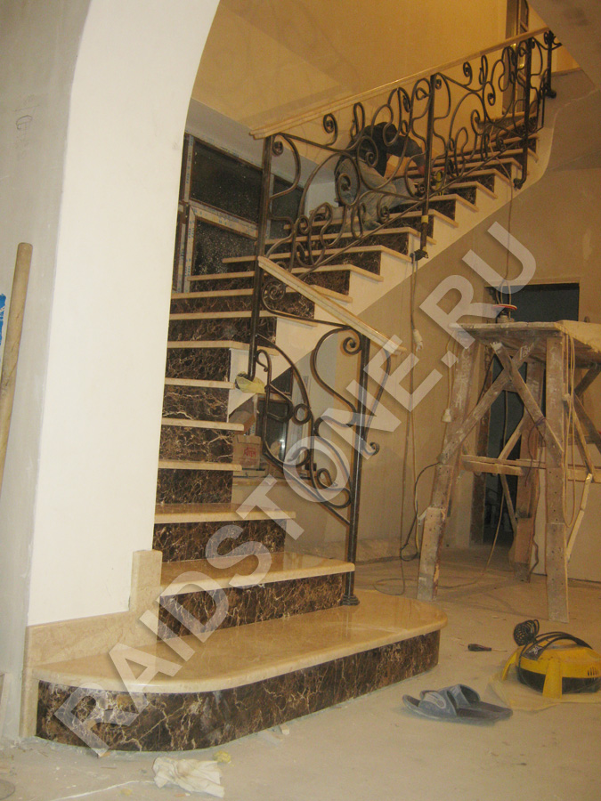 Ступени из мрамора Крема Марфил и Имперадор Дарк