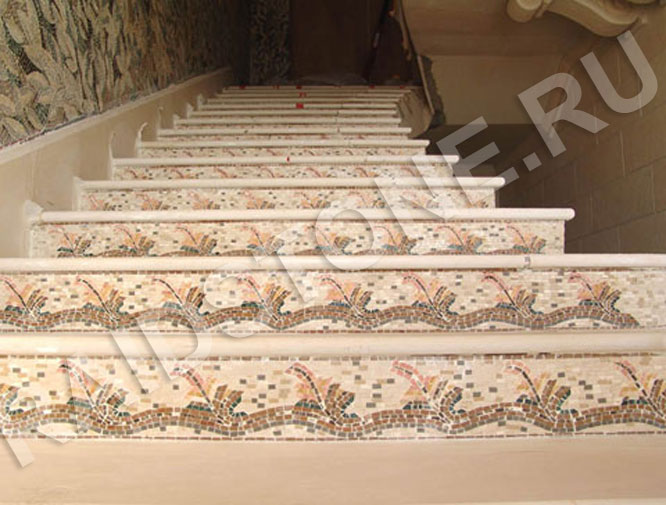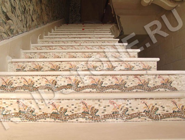 Ступени - мрамор Крема Марфил, подступени-мозаика.