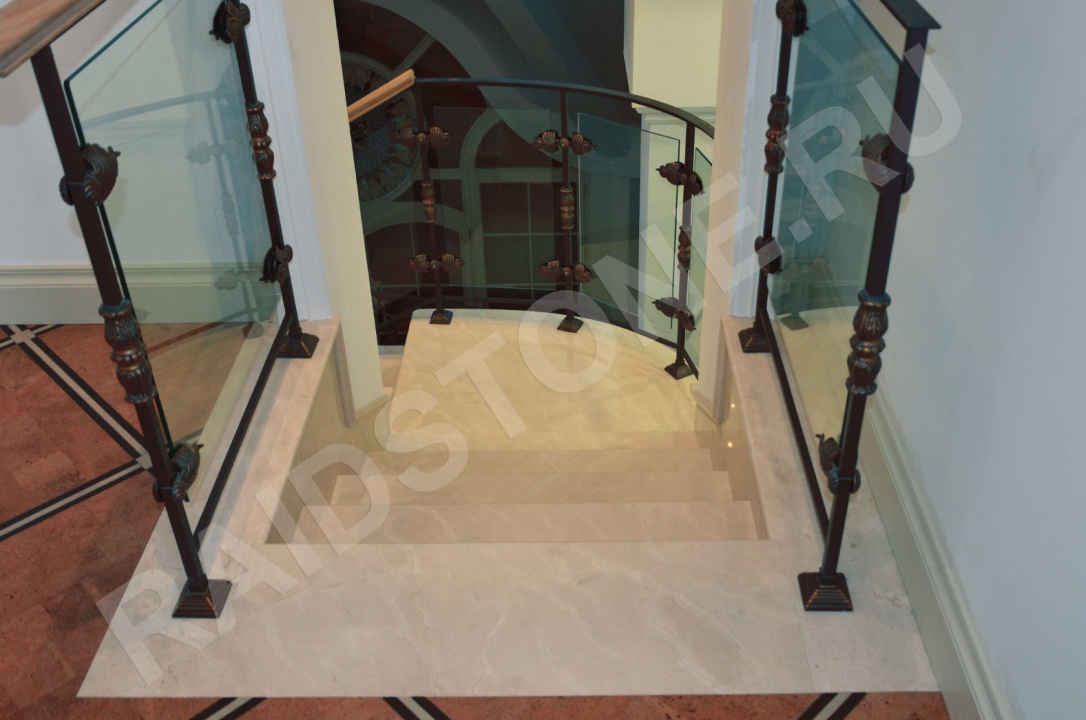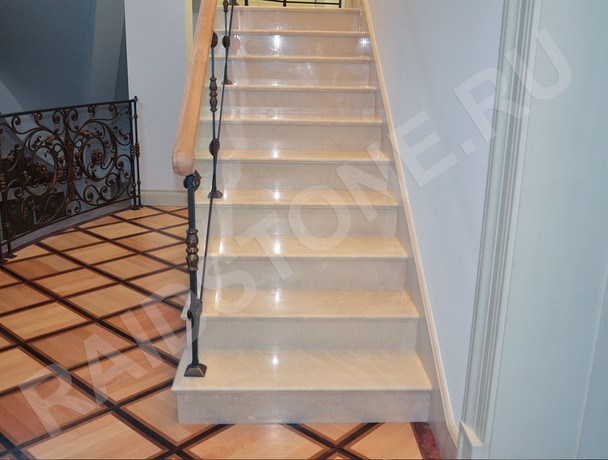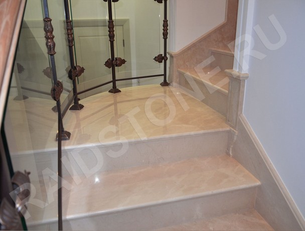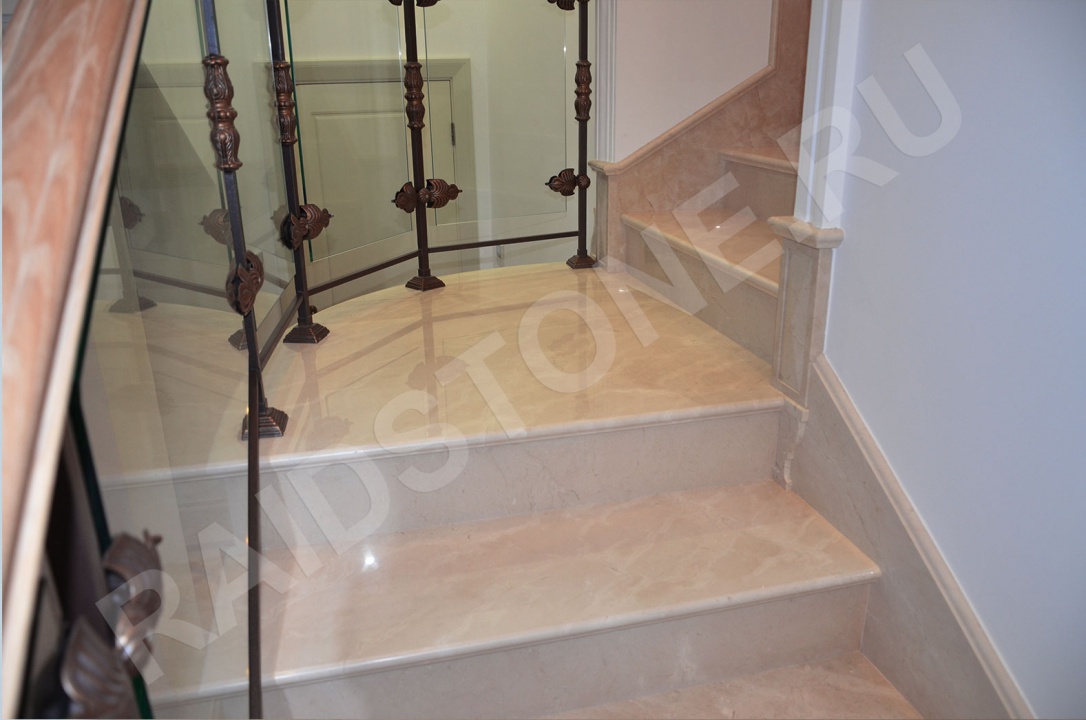 Заказать ступени из мрамора для лестниц любой сложности из камня Crema mafil можно в компании Raidstone. Она изготавливает ступени из натурального камня, привезенного из Италии.