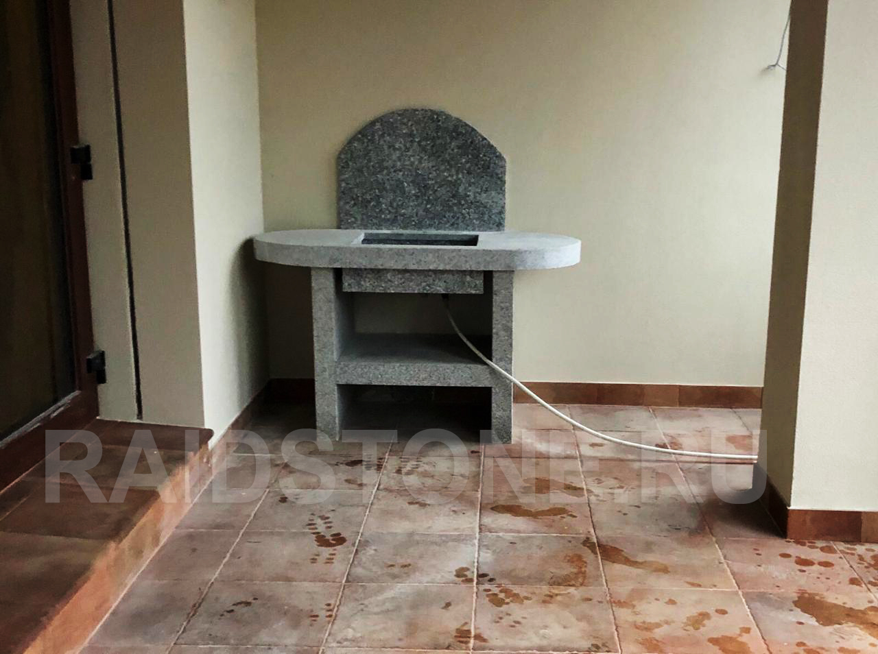 Тумба с раковиной и фартуком из гранита для зоны барбекю
