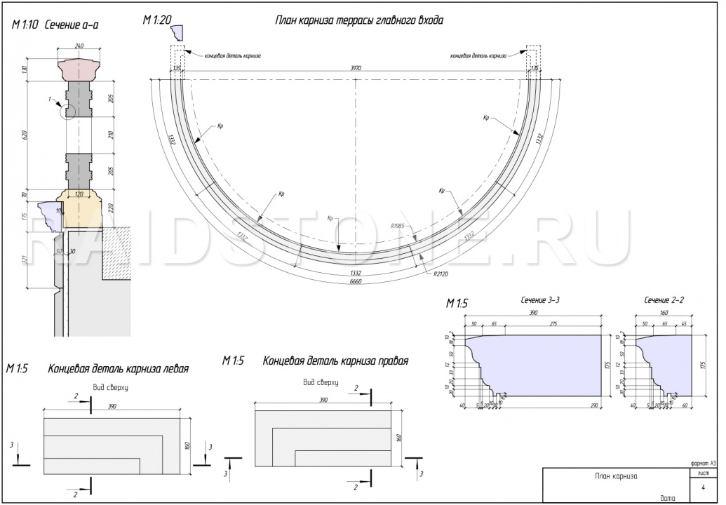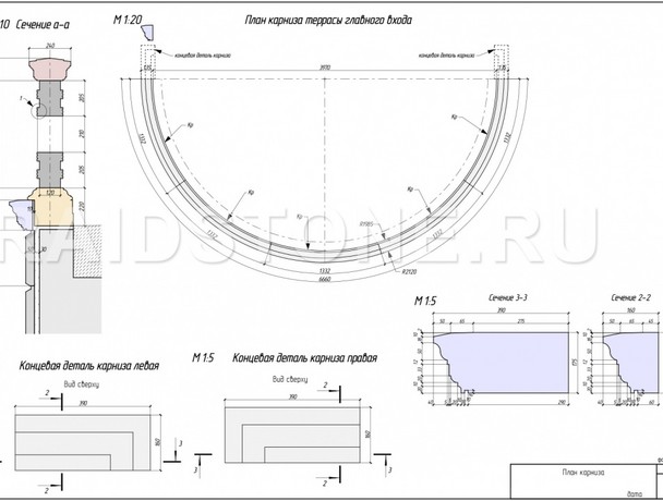 На изображении- карниз на чертеже, 3D визуализации , изготовления на производстве и после монтажа.