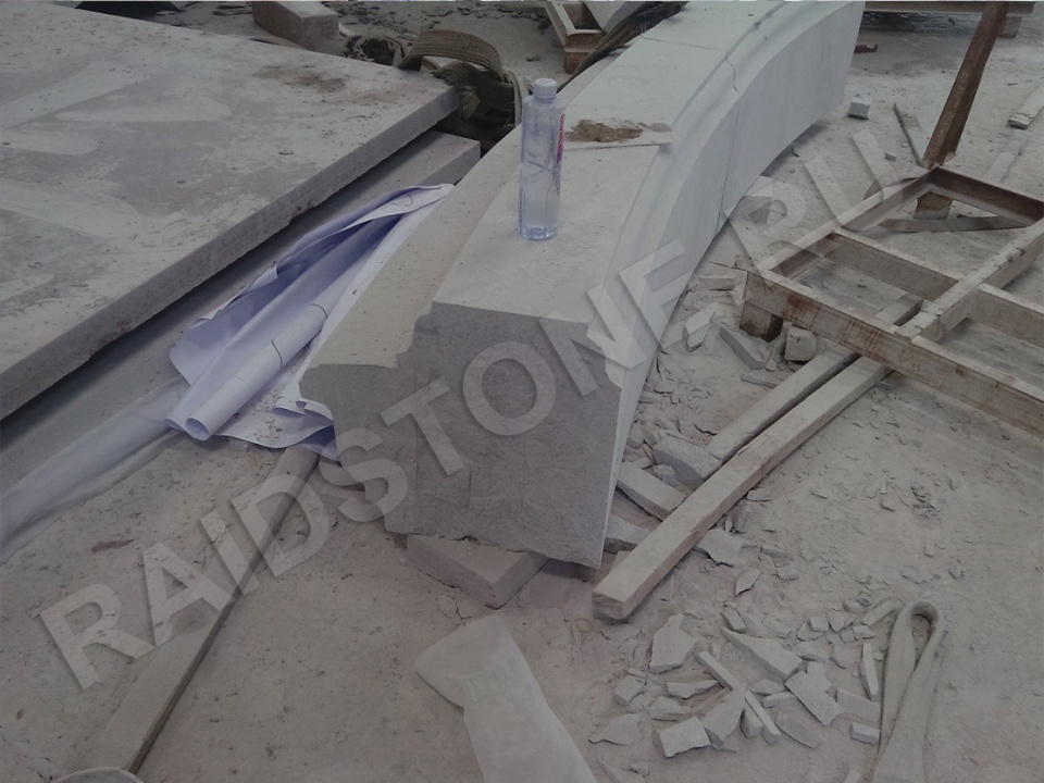Карнизы из гранита на террасе главного входа здания оздоровительного центра.