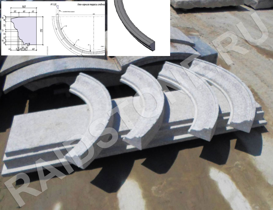 Материал карниза: гранит Роял вайт (Royal wgite, g603).