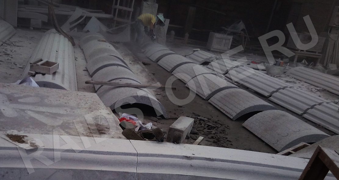 Элементы тела колонны с каннелюрами в процессе производства (так называемые "скорлупа" колонны).