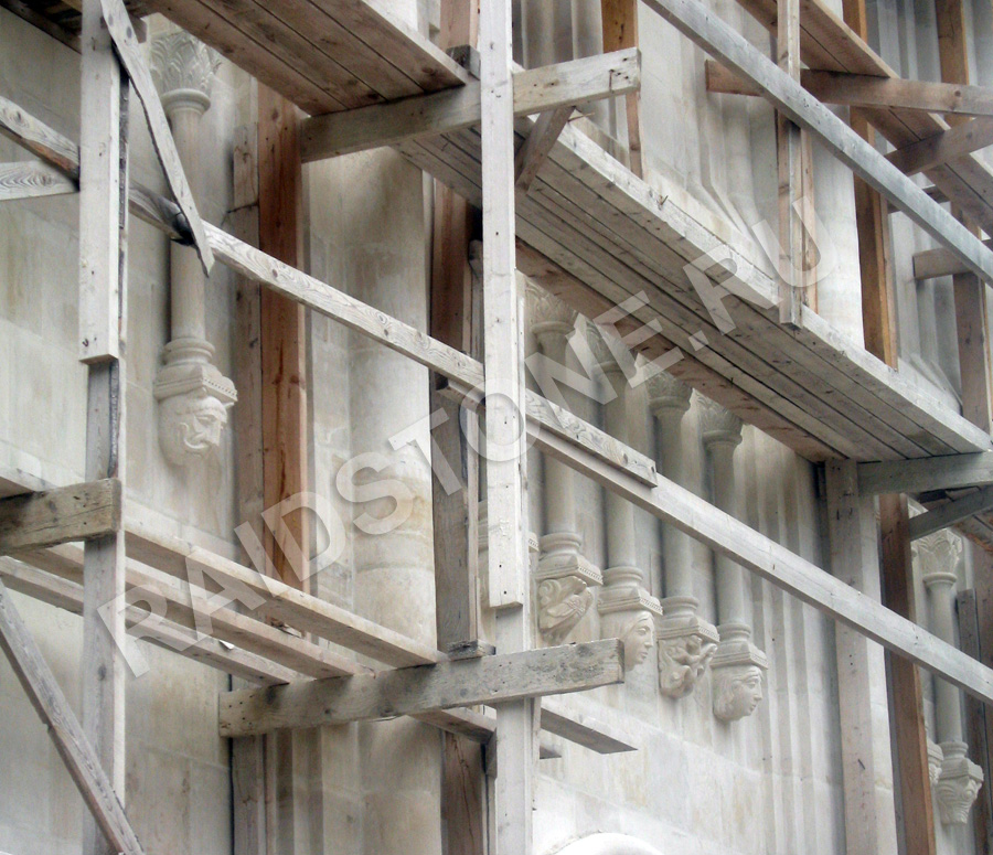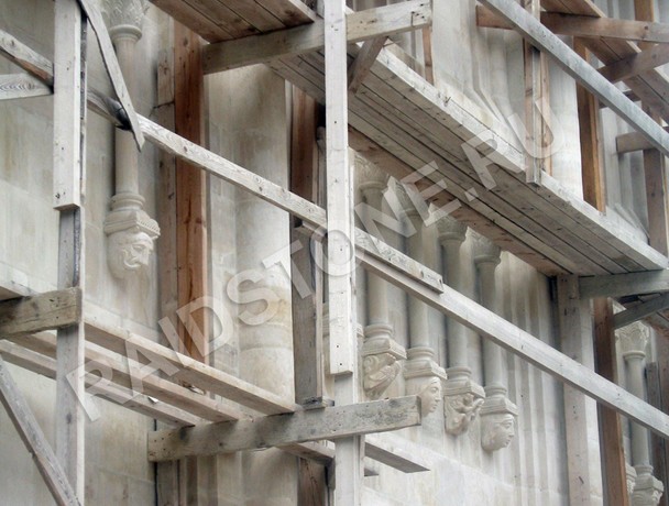 Фото- в процессе установки. Пилястры на фасаде крепятся вместе с декоративными кронштейнами - скульптур в виде мифических животных, птиц ручной работы.