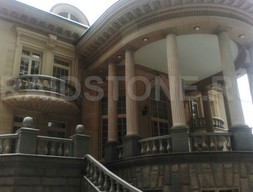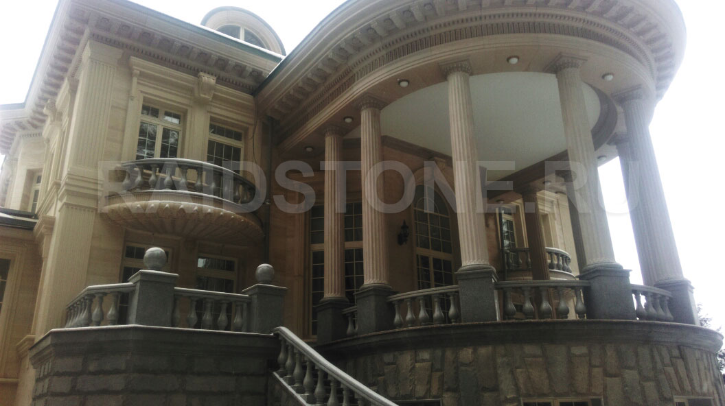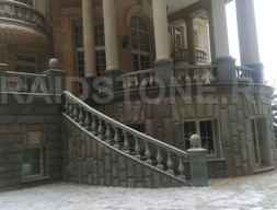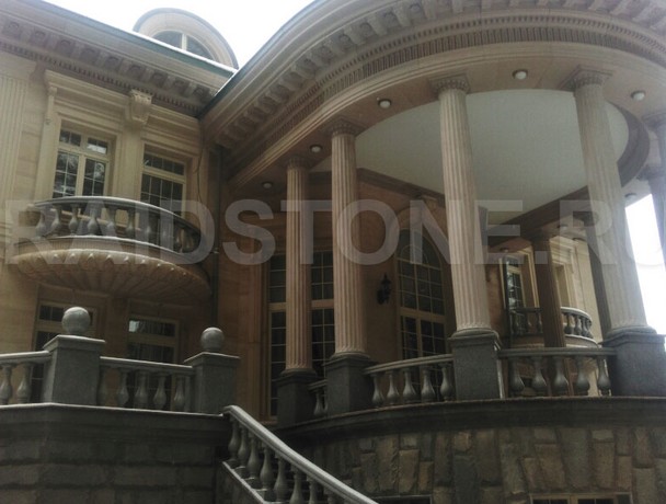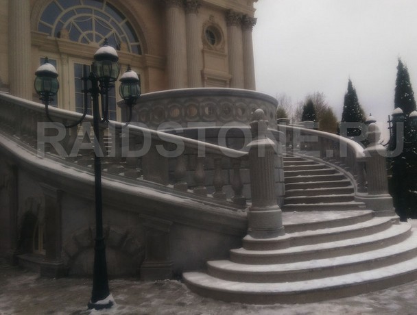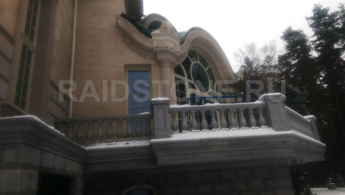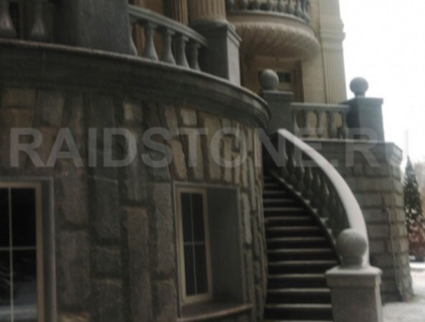 Столбы и тумбы произведены из натурального гранита на производстве ООО "Райдстоун-гранит и мрамор" по чертежу архитектора здания, а также установлены монтажной бригадой компании.